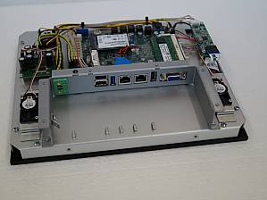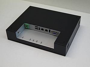 10,4″ resistiver Touch in Verbund mit elox.Alublende, Verstärkerbaustein zur Ausgabe von Signalen.